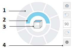 - The Outer Ring provides a set of eight sectors for quickly switch between standard and isometric views of your model. Each sector of the Outer Ring corresponds to a view. When you click on a sector, the software moves the scene to the corresponding view.