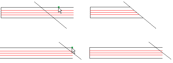 単一(Single)モードでは、1個のエンティティを指定するとエンティティ選択は完了します。 複数(Multiple)モードでは、エンティティをハイライトすることなく複数の点を指定してエンティティを選択します。 複数モードでは、交点を2回選択してしまっても2つの交差するエンティティを選択することができます。 |