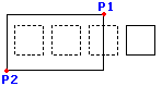 四角形の選択ウィンドウは対角線上にある2つの点によって定義されます。 選択ウィンドウの最初の点にダ|インタを置き、クリックします。 2番目の点をクリックすると、ウィンドウ内に完全に入るすべてのエンティティが指定されます。 |