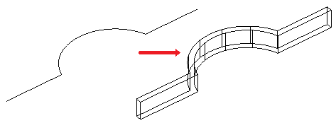 結果のエンティティは、選択したエンティティのエッジに沿って作成された直線、円弧、スプライン、または 3D ダ|リラインです。